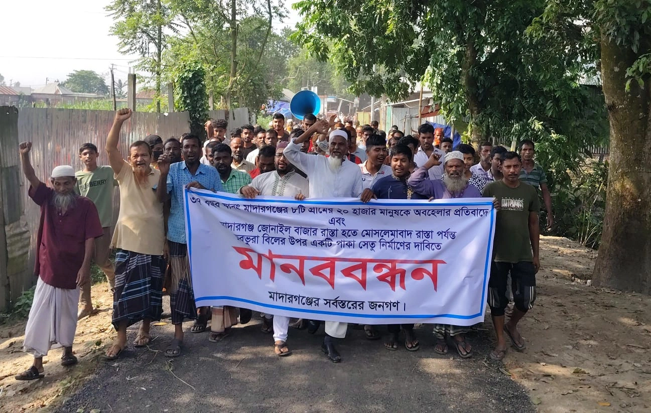 জামালপুরের মাদারগঞ্জের ভুরভুরে বিলের উপর একটি ব্রীজ নির্মাণের দাবীতে মানববন্ধন অনুষ্ঠিত হয়েছে।