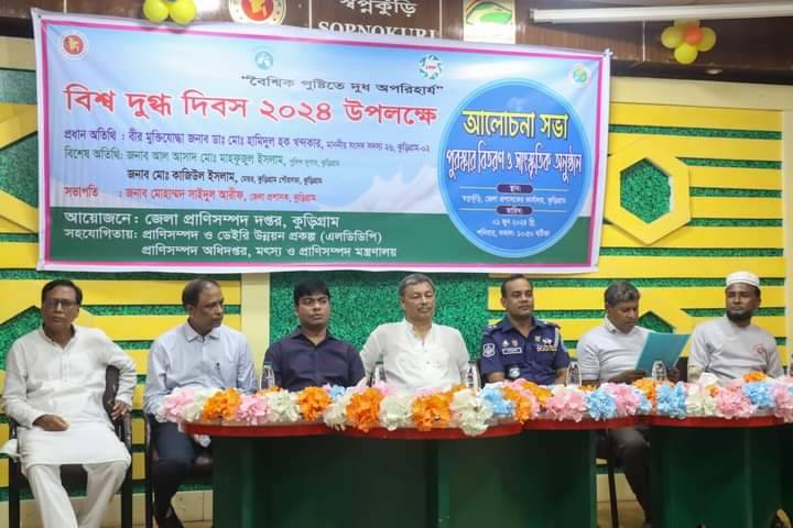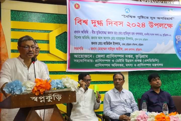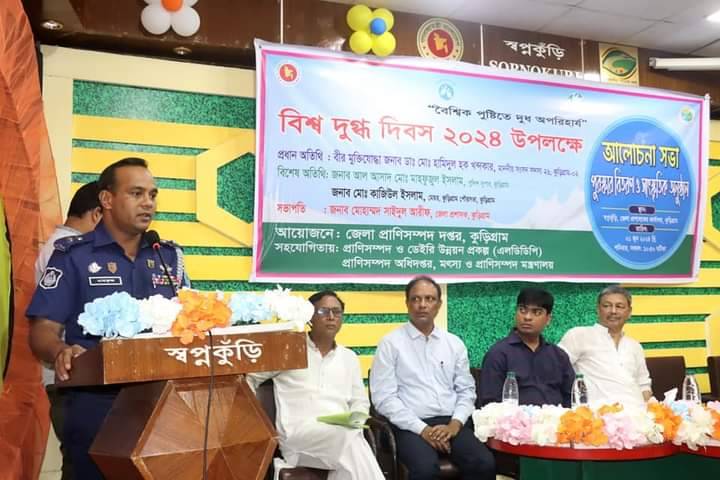 "বৈশ্বিক পুষ্টিতে দুধ অপরিহার্য" এই প্রতিপাদ্যে র্যালী ও আলোচনা সভায় কুড়িগ্রামের জেলা প্রশাসক জনাব মোহাম্মদ সাইদুল আরীফ এর সভাপতিত্বে প্রধান অতিথি হিসেবে উপস্থিত ছিলেন, কুড়িগ্রাম-২ আসনের মাননীয় সংসদ সদস্য বীর মুক্তিযোদ্ধা জনাব ডাঃ মোঃ হামিদুল হক খন্দকার, বিশেষ অতিথি হিসেবে উপস্থিত ছিলেন, পুলিশ সুপার জনাব আল আসাদ মোঃ মাহফুজুল ইসলাম, পৌর মেয়র জনাব মোঃ কাজিউল ইসলাম। আরো উপস্থিত ছিলেন জেলা প্রানিসম্পদ কর্মকর্তা জনাব ডাঃ মোঃ মোনাক্কা আলী।