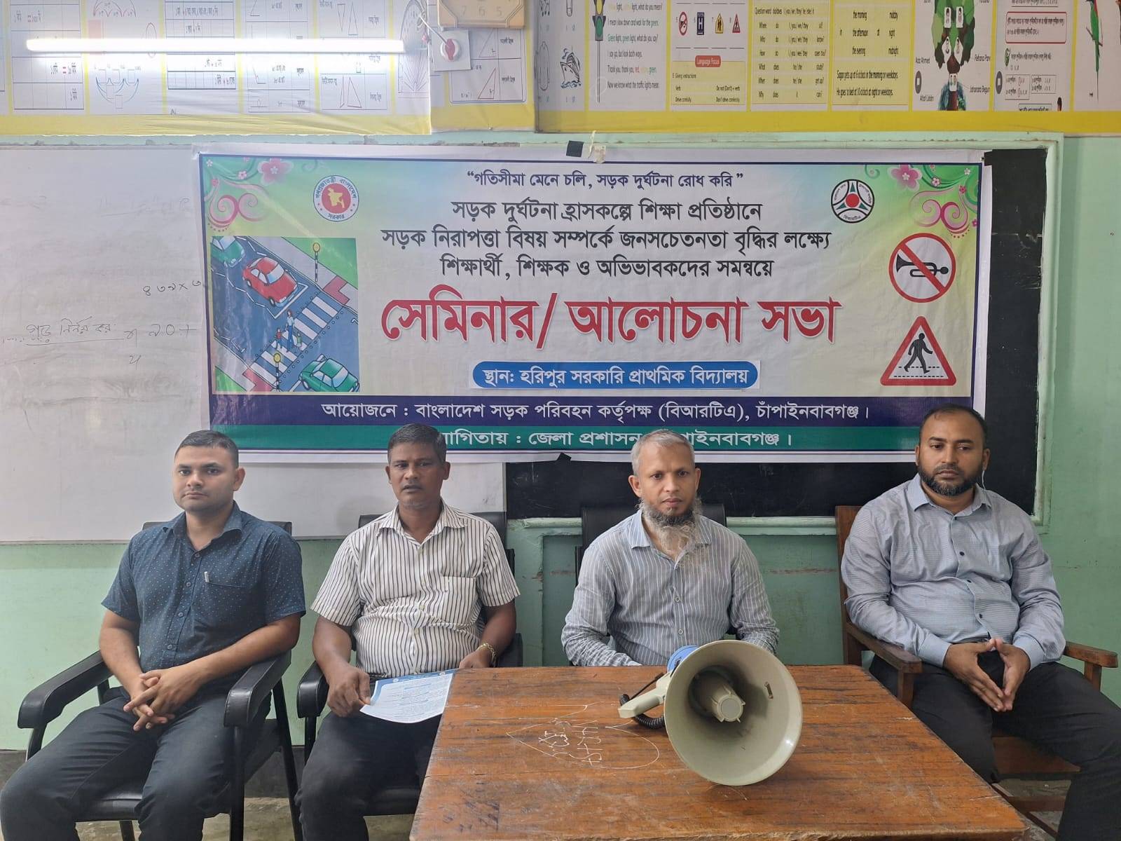 চাঁপাইনবাবগঞ্জ সদর উপজেলার হরিপুর ১ নং উচ্চ বিদ্যালয় ও হরিপুর সরকারি প্রাথমিক বিদ্যালয়ে অনুষ্ঠিত সভায় নিরাপদ সড়কের গুরুত্ব, সড়ক দুর্ঘটনা রোধে করণীয়, নিরাপদে সড়ক ব্যবহার সম্পর্কে সচেতনতা বৃদ্ধি মূলক, উন্নত শিক্ষামূলক প্রসঙ্গে আলোচনা করা হয় এবং শেষে শিক্ষার্থীদের মাঝে সড়ক সচেতনতা মূলক লিফলেট বিতরণ করা হয়।