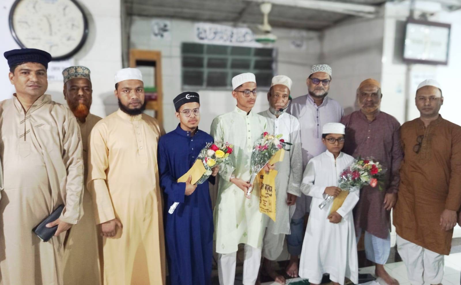 অত্যন্ত সুন্দর ও সুলীল কন্ঠে তিন ক্ষুদে কোরআন এ হাফেজ মুহাম্মদ সাদ্দাম হোসেন, হাফেজ মুহাম্মদ ইমাম হোসেন ও হাফেজ মুহাম্মদ ওমর বিন খালেদ শেষ পর্যন্ত নির্ভুলভাবে খতমে তারাবীহ নামায আদায় করে। তাদের কে হাদিয়া, উপহার সামগ্রী সহ এক অনন্য সম্মান জানানো হয়।