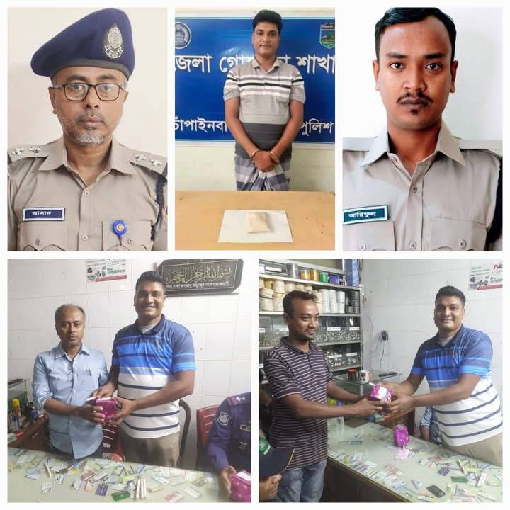 সামাজিক যোগাযোগ মাধ্যম ফেসবুকে ভাইরাল হওয়া দুটি ছবিতে দেখা যায়, ৪-৫টি মাদক মামলার আসামী চাঁপাইনবাবগঞ্জের সীমান্তবর্তী চরবাগডাঙ্গা এলাকার অন্যতম শীর্ষ হেরোইন কারবারি মিজানুর রহমান ওরফে মিজানের থেকে উপহার গ্রহণ করছেন, মাদকদ্রব্য নিয়ন্ত্রণ অধিদপ্তর চাঁপাইনবাবগঞ্জ জেলা কার্যালয়ের উপ-পরিদর্শক (এসআই) মো. আসাদুর রহমান ও সিপাই মো. আরিফুল ইসলাম। লাল প্যাকেটে মোড়ানো উপহার নেয়ার ছবি তোলা হয়েছে মাদক ব্যবসায়ী মিজানুর রহমান মিজানের ব্যবসায় প্রতিষ্ঠান জেলা শহরের বিশ্বরোড এলাকায় এমজে ট্রেডার্সের একটি এসএস পাইপ ও স্টিলের ওয়ার্কসপে।