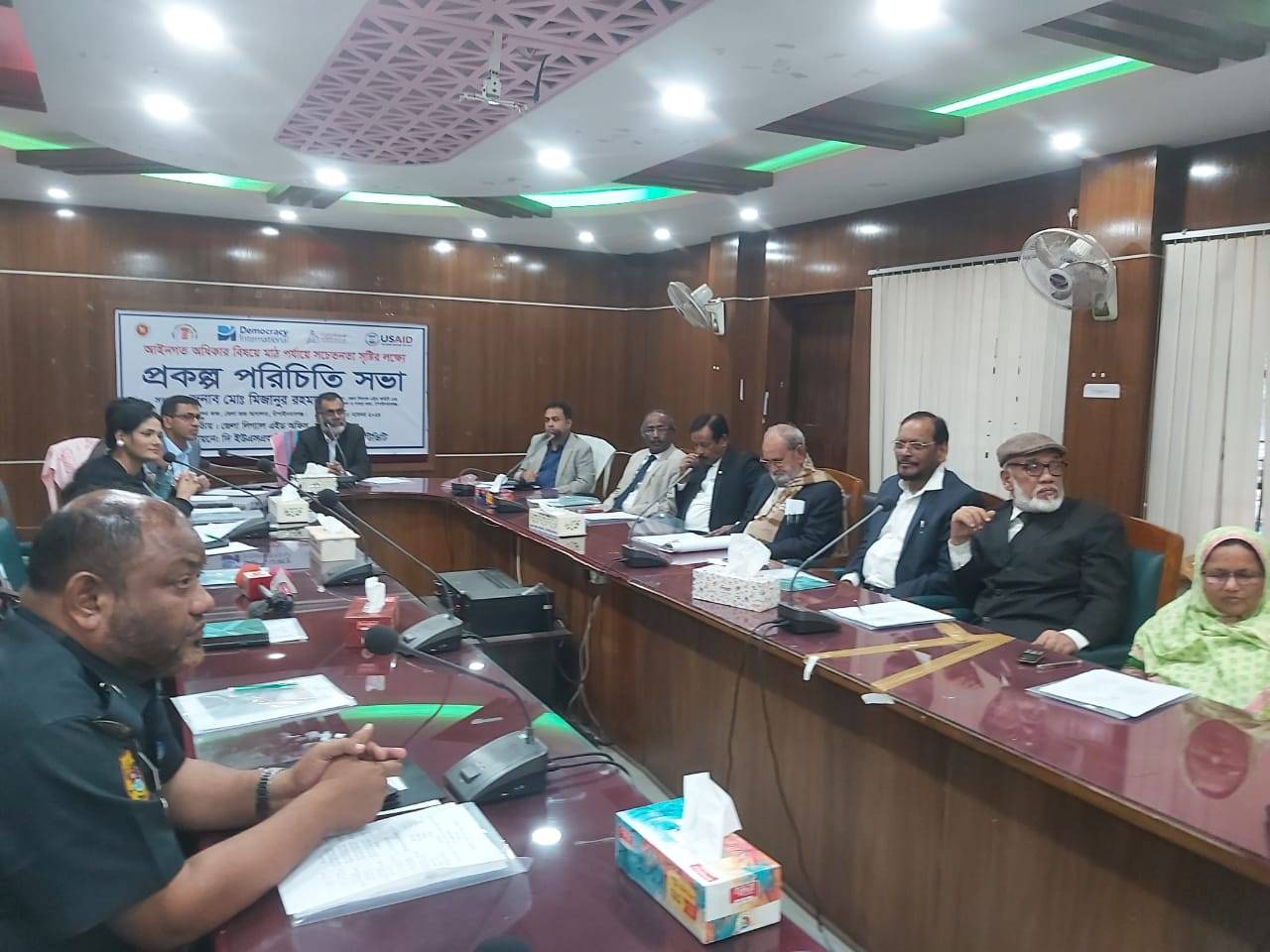 জেলা লিগ্যাল এইড অফিসার ও সিনিয়র সহকারী জজ বেগম রুখশানা খানম এর পরিচালনায় সভায় বিশেষ অতিথি হিসাবে উপস্থিত ছিলেন নারী ও শিশু নির্যাতন দমন ট্রাইব্যুনালের বিচারক (জেলা ও দায়রা জজ) মোঃ হায়দার খোন্দকার, চীফ জুডিশিয়াল ম্যাজিস্ট্রেট (ভারপ্রাপ্ত) মোঃ আবু তালেব, অতিরিক্ত জেলা ম্যাজিস্ট্রেট ইকতেখারুল ইসলাম, জেলা ও দায়রা জজ আদালতের পিপি এ্যাড. মো. আবদুল ওদুদ, জিপি এ্যাড. মো. মোসাদ্দেক হোসেন, নারী ও শিশু নির্যাতন দমন ট্রাইব্যুনালের পিপি এ্যাড. মো. রবিউল হক দোলন, জেলা আইনজীবী সমিতির সভাপতি এ্যাড. সোলায়মান বিশু ও সাধারণ সম্পাদক এ্যাড. একরামুল হক পিন্টু।