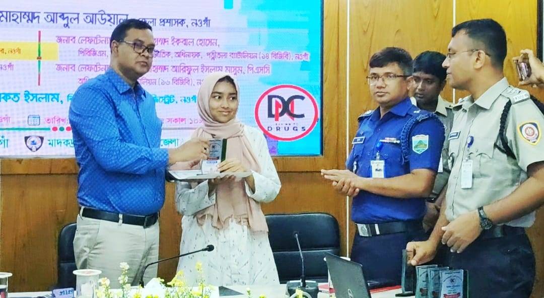 বৃহস্পতিবার (২৬ জুন) সকালে দিবসটি উপলক্ষে জেলা মাদকদ্রব্য নিয়ন্ত্রন অধিদপ্তরের আয়োজনে সার্কিট হাউস থেকে মাদকবিরোধী একটি র্যালি বের করা হয়। র্যালিটি শহরের প্রধান সড়ক গুলি প্রদক্ষিণ করে জেলা প্রশাসক কার্যালয়ে গিয়ে শেষ হয়। পরে জেলা প্রশাসকের সম্মেলন কক্ষে বিজ্ঞ অতিরিক্ত জেলা ম্যাজিস্ট্রেট মোঃ সৈকত ইসলামের সভাপতিত্বে আলোচনা সভার আয়োজন করা হয়। সভায় প্রধান অতিথি হিসাবে বক্তব্য রাখেন জেলা প্রশাসক মোহাম্মদ আব্দুল আউয়াল। সভায় বিশেষ অতিথি হিসাবে আলোচনা করেন, সিভিল সার্জন ডাঃ মোঃ আমিনুল ইসলাম, মাদকদ্রব্য নিয়ন্ত্রণ অধিদপ্তরের সহকারী পরিচালক মোঃ লোকমান হোসেন, পত্নীতলা (১৪ বিজিবি) অধিনায়ক লেফটেন্যান্ট কর্নেল মোহাম্মদ ইকবাল হোসেন,নওগাঁ (১৬ বিজিপি) অধিনায়ক লেফটেন্যান্ট কর্নেল মোহাম্মদ আরিফুল ইসলাম মাসুম, অতিরিক্ত পুলিশ সুপার (ক্রাইম অ্যান্ড অপস্)সুমন রঞ্জন সরকার প্রমুখ।আলোচনা সভা শেষে চিত্রাঙ্কন ও রচনা প্রতিযোগিতায় বিজয়ীদের মাঝে পুরস্কার বিতরণ করা হয়।
