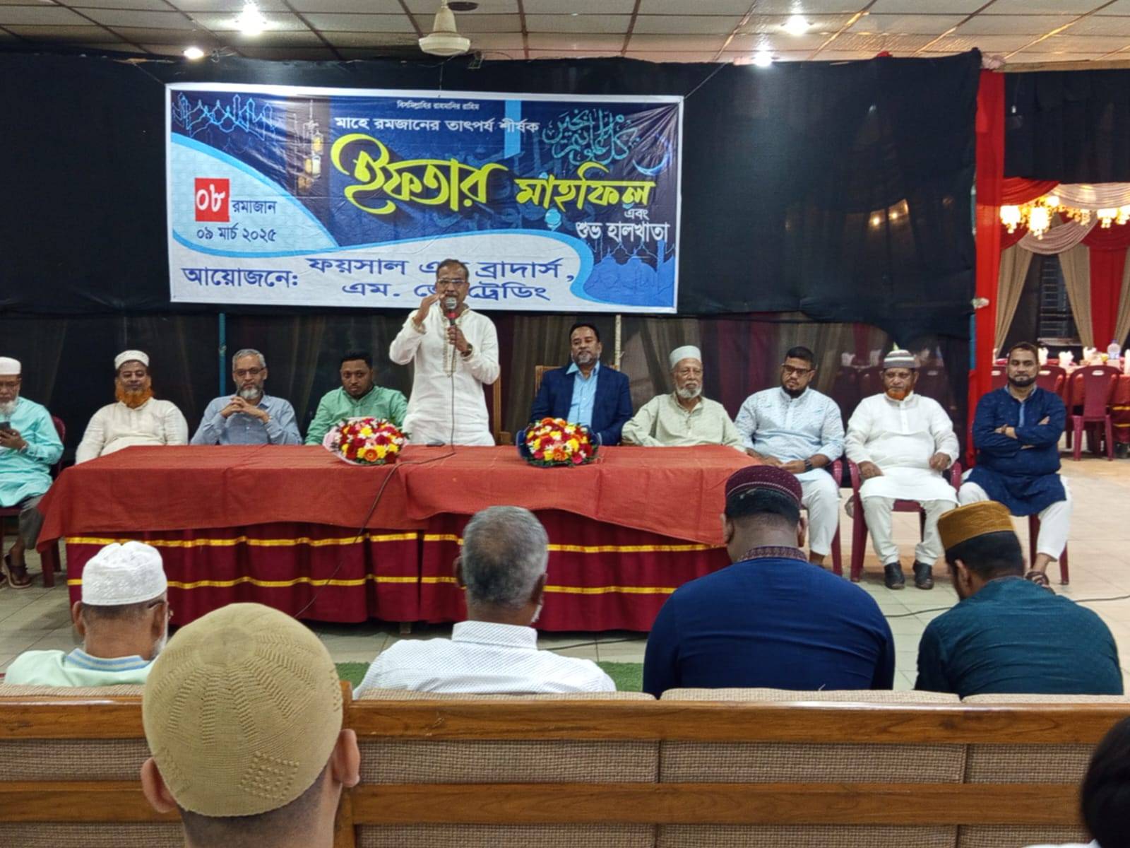 নগরীর দক্ষিণ হালিশহরের রেইনবো কমিউনিটি সেন্টারে ফয়সাল এন্ড ব্রাদার্সের ইফতার মাহফিল ও শুভ হালখাতা অনুষ্ঠানে প্রধান অতিথির বক্তব্য রাখেন ডায়মন্ড সিমেন্ট লিমিটেডের ডেপুটি ব্যবস্থাপনা পরিচালক লায়ন মোঃ হাকিম আলী, বিশেষ অতিথির বক্তব্য রাখেন জিপিএস ইস্পাতের পরিচালক আলমাস শিমুল,বিএস,আর,এম'র পরিচালক মোঃ সালেহ ইমন।