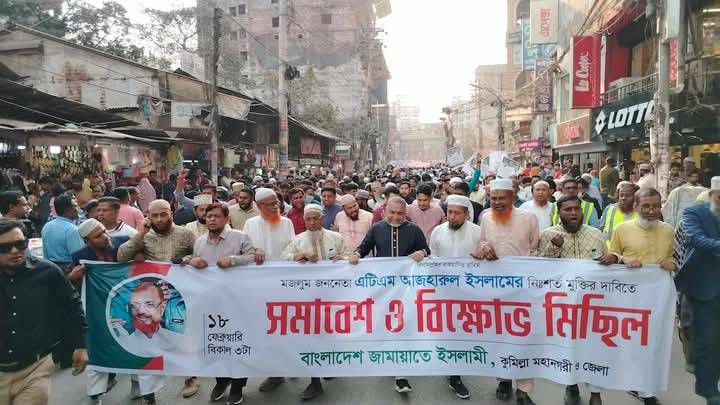 মঙ্গলবার বিকাল ৩টায় কুমিল্লা টাউন হল মাঠে জামায়াতের নিবন্ধন পুনর্বহালের ও দলের সহকারী সেক্রেটারি জেনারেল এটিএম আজহারুল ইসলামের অবিলম্বে মুক্তির দাবিতে দেশব্যাপী কেন্দ্রীয় কর্মসূচি অংশ হিসাবে কুমিল্লা মহানগরী জামায়াত আয়োজিত বিক্ষোভ মিছিল ও সমাবেশে প্রধান অতিথির বক্তব্য তিনি এসব কথা বলেন।