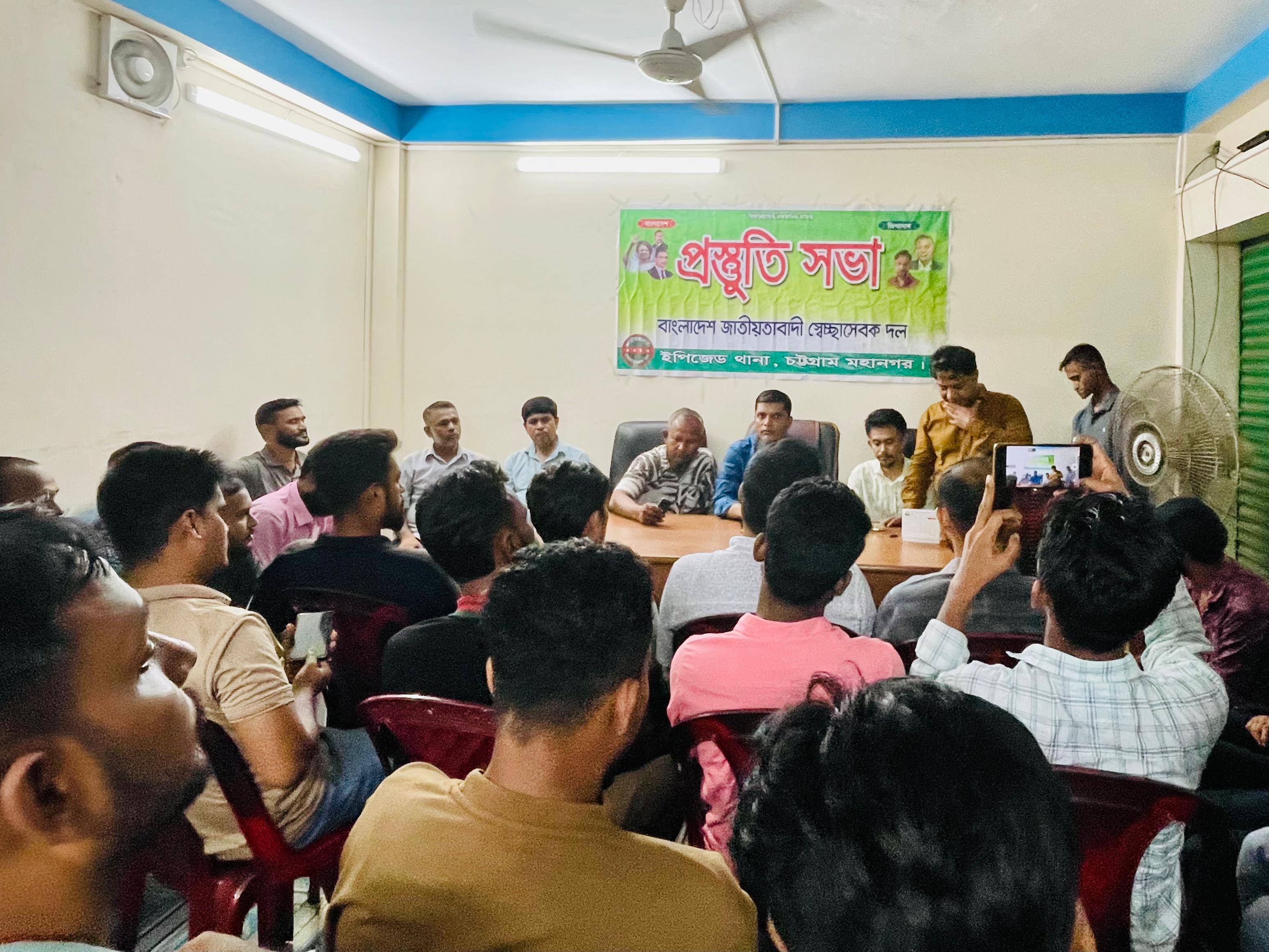 বাংলাদেশ জাতীয়তাবাদী স্বেচ্ছাসেবক দল চট্টগ্রাম মহানগর কমিটির আগামী ১৯ আগস্ট প্রতিষ্ঠাবার্ষিকী-২০২৫ উপলক্ষে এক প্রস্তুতি সভা ১৭ আগস্ট, রোববার সন্ধ্যায় ইপিজেডে স্বেচ্ছাসেবক দলের অস্থায়ী কার্যালয়ে সিনিয়র যুগ্ম আহ্বায়ক মোঃ আব্দুল মোবিনের সভাপতিত্বে ও স্বেচ্ছাসেবক দলের নেতা মোঃ আশরাফ উদ্দিন আল সাবা'র সঞ্চালনায় অনুষ্ঠিত প্রস্তুতি সভায় প্রধান অতিথি হিসেবে উপস্থিত ছিলেন ইপিজেড থানা স্বেচ্ছাসেবক দলের আহ্বায়ক মোঃ ইউসুফ সুমন।