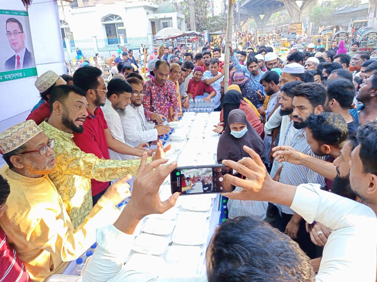 পরিশেষে উপস্থিত জনতার মাঝে প্রায় প্যাকেট তৈরি করা ইফতার ও কোমল পানীয় বিতরণ করা হয়েছে।