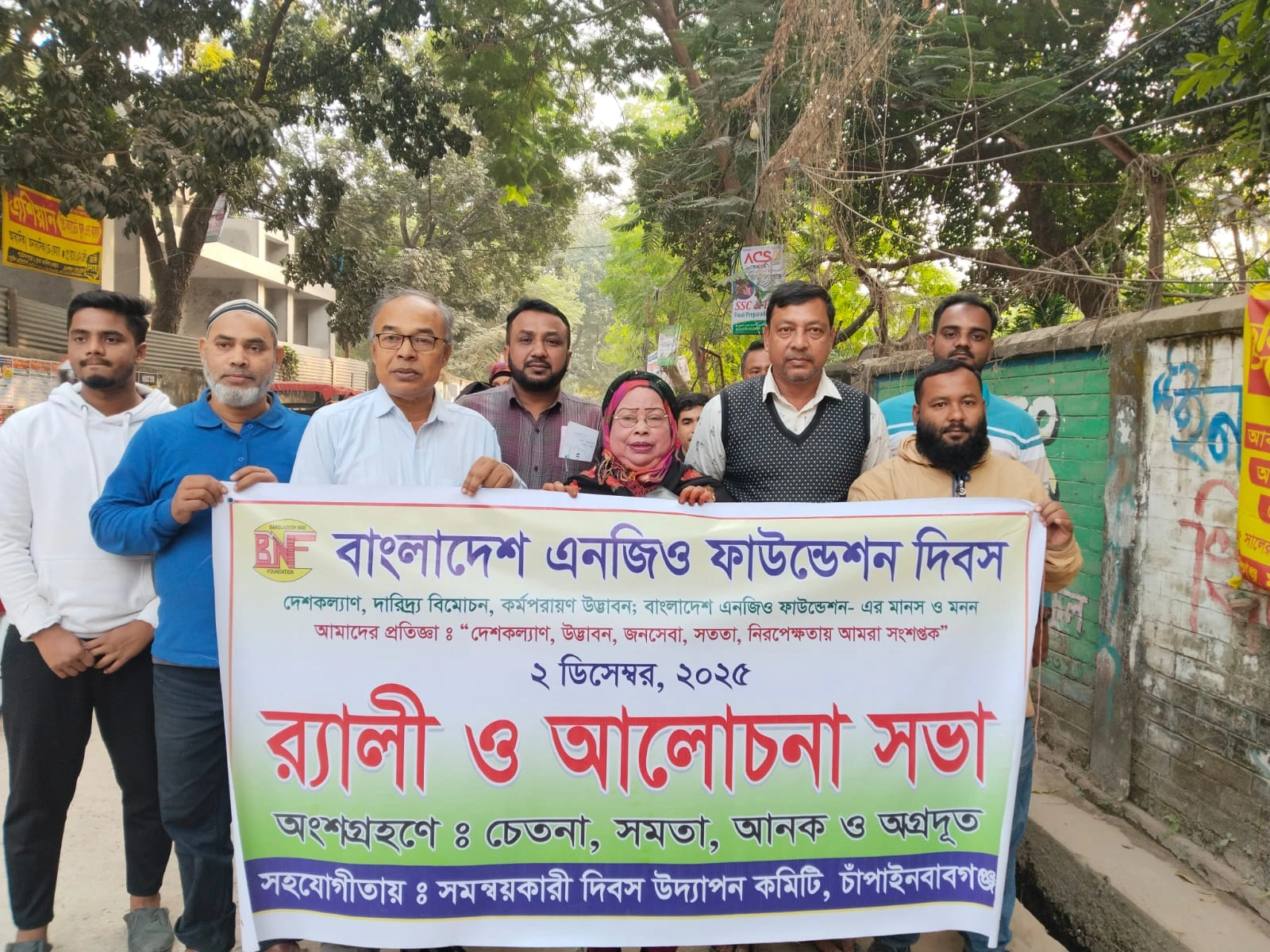 চাঁপাইনবাবগঞ্জ জেলায় ২ ডিসেম্বর ‘বাংলাদেশ এনজিও ফাউন্ডেশন দিবস’ উদযাপন করা হয়েছে। এ উপলক্ষে বর্ণাঢ্য র্যালি ও আলোচনা সভার আয়োজন করা হয়। দিবস উদযাপনে অংশ নেয় চেতনা মানবিক উন্নয়ন সংস্থার পাশাপাশি সমতা নারী উন্নয়ন সংস্থা, আহমদ নগর কমপ্লেক্স (আনক) ও অগ্রদূত বাংলাদেশ।