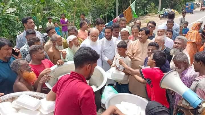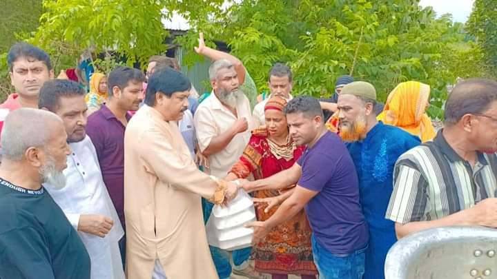 শনিবার (৩১ আগস্ট) দুপুর ১২ টায় বন্যায় পানিপন্দি হওয়া প্রায় পাঁচশত পরিবারের মাঝে এই রান্না করা খাবার তুলে দেন সাবেক মেয়র মনিরুল হক সাক্কু।