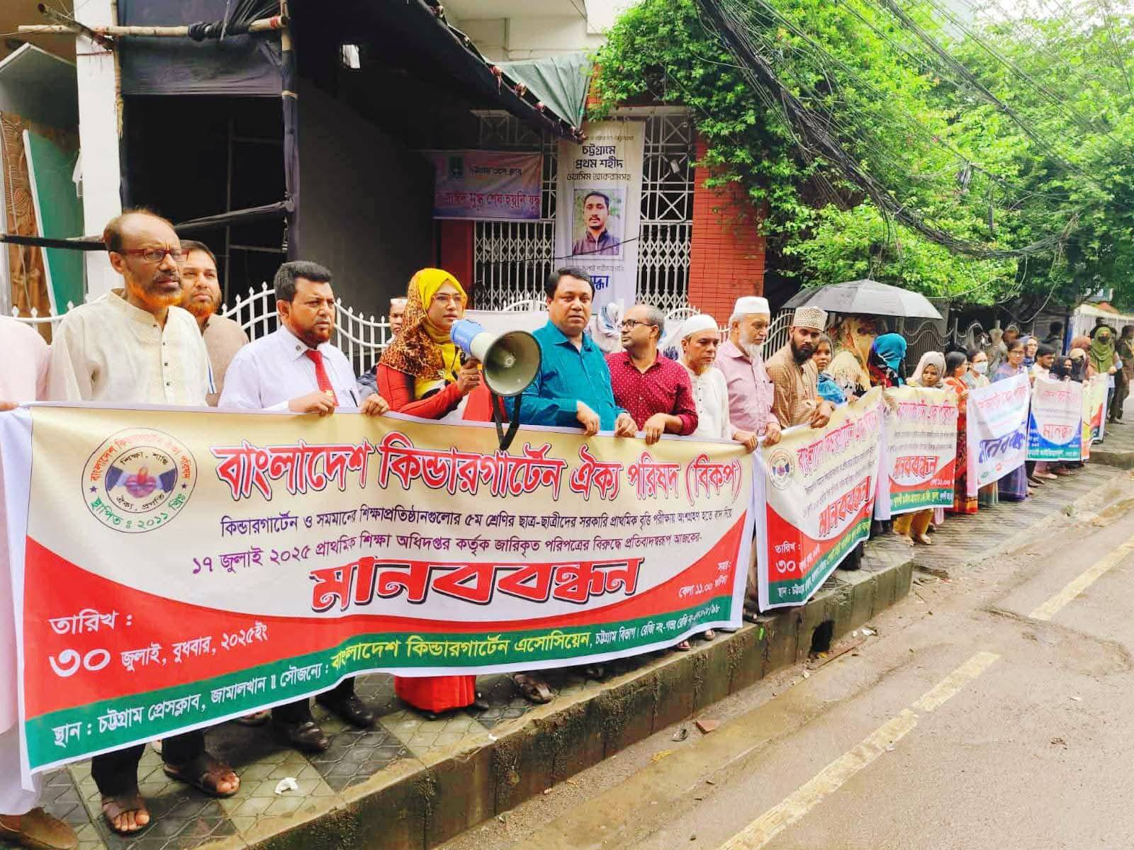 তাই এই বিমাতা সুলভ আচরণ বন্ধ করে অবিলম্বে কিন্ডারগার্টেন শিক্ষার্থীদের ও বৃত্তি পরীক্ষায় অংশগ্রহনের সুযোগ দিতে হবে বলে দাবি জানান মানববন্ধন ও পদযাত্রা৷র প্রধান অতিথি বাংলাদেশ কিন্ডারগার্টেন এসোসিয়েশন কেন্দ্রীয় ভাইস চেয়ারম্যান ও ঐক্য পরিষদ নেতা অধ্যাপক এ কে এম নূরুল বশর সুজন।