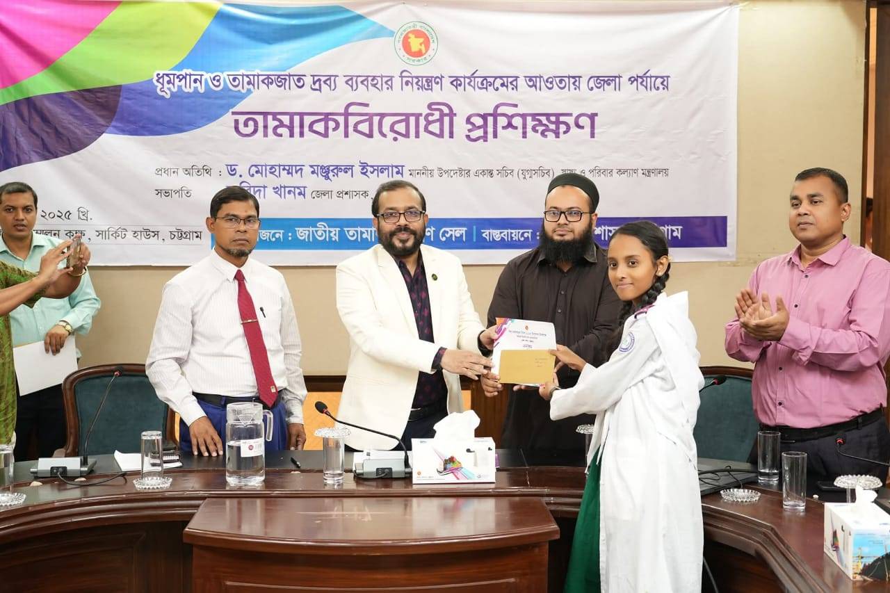 "তামাক কোম্পানির কূটকৌশল উন্মোচন করি,তামাক ও নিকোটিনমুক্ত বাংলাদেশ গড়ি" প্রতিপাদ্য কে সামনে রেখে চট্টগ্রাম জেলায় বিশ্ব তামাকমুক্ত দিবস ২০২৫ উদযাপন উপলক্ষে বর্ণাঢ্য র্যালি, আলোচনা সভা ও তামাক বিরোধী প্রশিক্ষণ ৩১ মে শনিবার দুপুরে অনুষ্ঠিত হয়েছে।