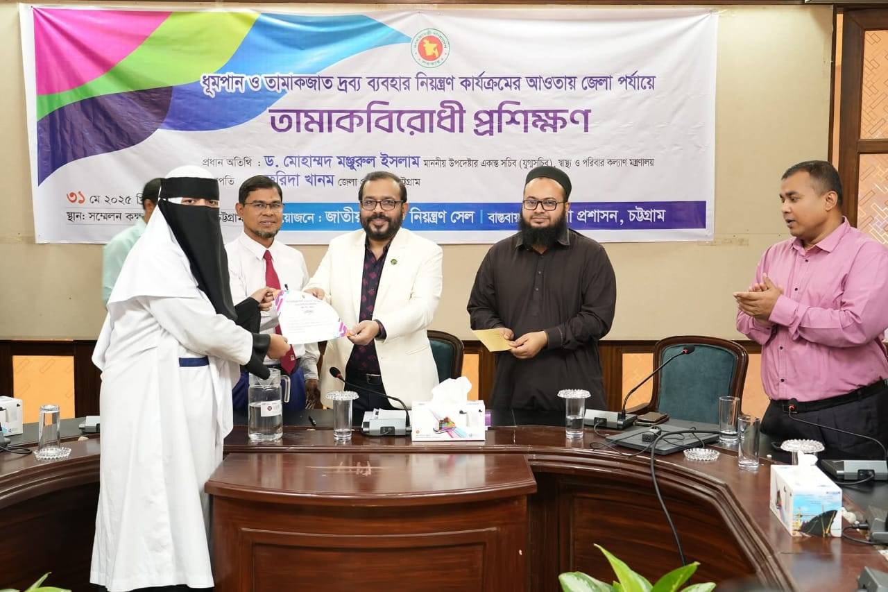 চট্টগ্রাম সার্কিট হাউজ সম্মেলন কক্ষে জেলা প্রশাসন ও সিভিল সার্জন অফিসের যৌথ আয়োজনে চট্টগ্রামের জেলা প্রশাসকের পক্ষে অতিরিক্ত জেলা ম্যাজিস্ট্রেট সৈয়দ মাহবুবুল হকের সভাপতিত্বে "Unmasking the Appeal: Exposing Industry Tactics On Tobacco and Nicotine Products" শীর্ষক আলোচনা সভায় প্রধান অতিথি হিসেবে উপস্থিত ছিলেন ড. মোহাম্মদ মঞ্জুরুল ইসলাম, বর্তমান অন্তবর্তীকালীন সরকার উপদেষ্টার একান্ত সচিব (যুগ্মসচিব), স্বাস্থ্য ও পরিবার কল্যাণ মন্ত্রণালয়।