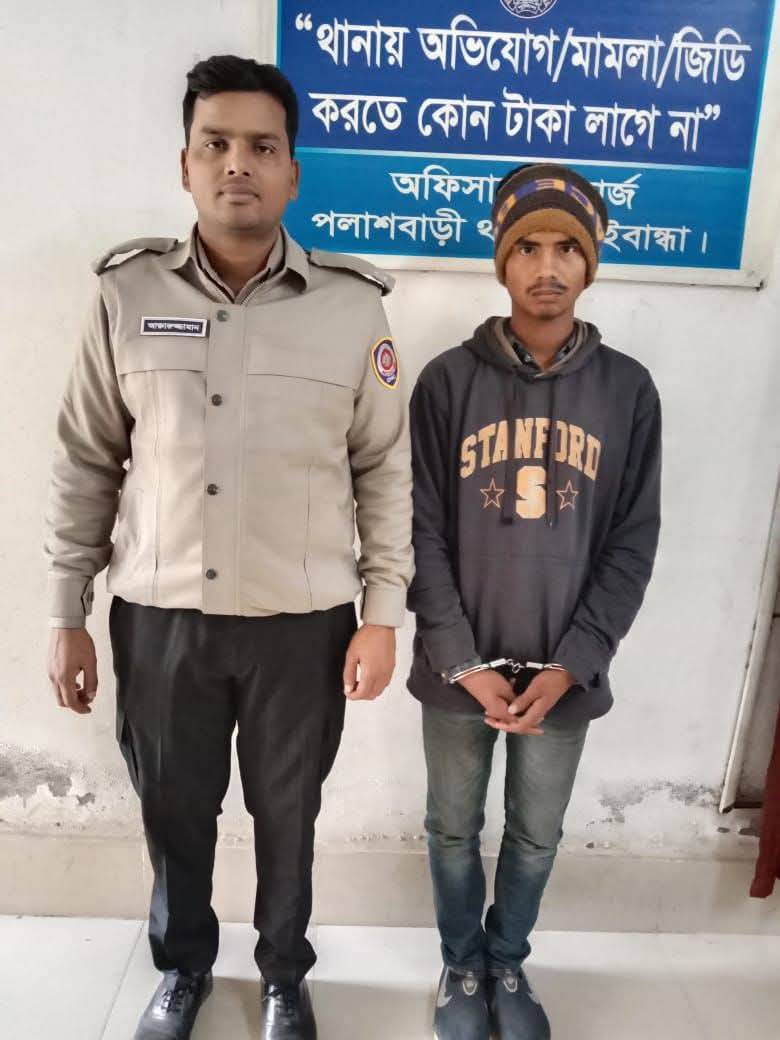২০ জানুয়ারি সোমবার সকালে রংপুর ঢাকা জাতীয় মহাসড়কের পলাশবাড়ীর মহেশপুর নামক স্থানে একটি যাত্রী বাসে তল্লাশি চালিয়ে তাকে আটক করা হয়।