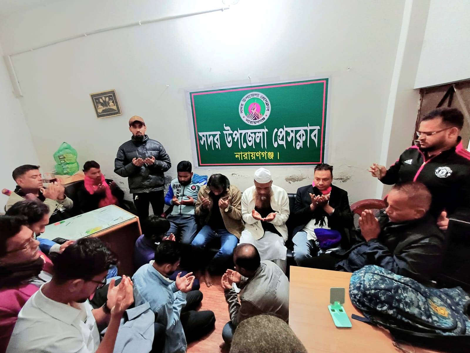 গভীর শোক প্রকাশ করেন নারায়ণগঞ্জ সদর উপজেলা প্রেস ক্লাবে সকলেই। তার আত্মার মাগফিরাত কামনায় ০৮ এ জানুয়ারি রোজ বৃহস্পতিবার বাদ মাগরিব এর পরে দোয়ার আয়োজন করা হয়। উক্ত দোয়ায় অংশগ্রহণ করেন তোফাজ্জল হোসেনের ছেলে মাহমুদুল ইসলাম সৌরভ এবং নারায়ণগঞ্জ সদর উপজেলা প্রেস ক্লাবের উপদেষ্টা এস কে শাহীন এবং সভাপতি নাবিলা শারমিন, সাধারণ সম্পাদক জিহাদ হোসেন,যুগ্ম সাধারণ সম্পাদক সানি হোসেন, দপ্তর সম্পাদক ইব্রাহীম হোসেন, সাংগঠনিক সম্পাদক রুহুল আমিন মন্ডল। সহকারী সাংগঠনিক সম্পাদক জুয়েল আহম্মেদ,সহকারী কোষাধ্যক্ষ শহিদ আলাম, প্রচার সম্পাদক মোঃ ফারুক আহম্মেদ, শিক্ষা বিষয়ক সম্পাদক শহিদুজ্জামান আতিফ, সদস্য সচিব মোঃ কাউছার হোসেন, মোঃ সাগর, ফাহমিদা এ্যামী,মোহাম্মদ হাছান, মোঃ তোফাজ্জল হোসেন,মোঃ শাহআলম, মোঃ জাকির সহ আরো অনেকেই....মিলাদ শেষে প্রয়াত সাংবাদিকের আত্মারতৃপ্তির জন্য দোয়া করা হয়।