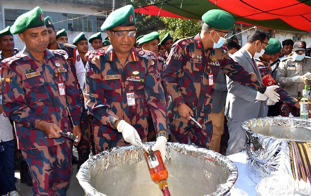 এরই ধারাবাহিকতায় সাতক্ষীরা জেলার ৫৪ কিলোমিটার সীমান্ত এলাকা থেকে সাতক্ষীরা ব্যাটালিয়ন ৩৩ বিজিবি এর সদস্যগণ গত ১৫ ফেব্রুয়ারি ২০২৩ তারিখ হতে ৩১ ডিসেম্বর ২০২৪ তারিখ পর্যন্ত সীমান্ত হতে মালিকবিহীন অবস্থায় ভারতীয় ফেন্সিডিল ৭,৪৫৬ বোতল, ভারতীয় বিভিন্ন প্রকার মদ ১৭,২১৮ বোতল।