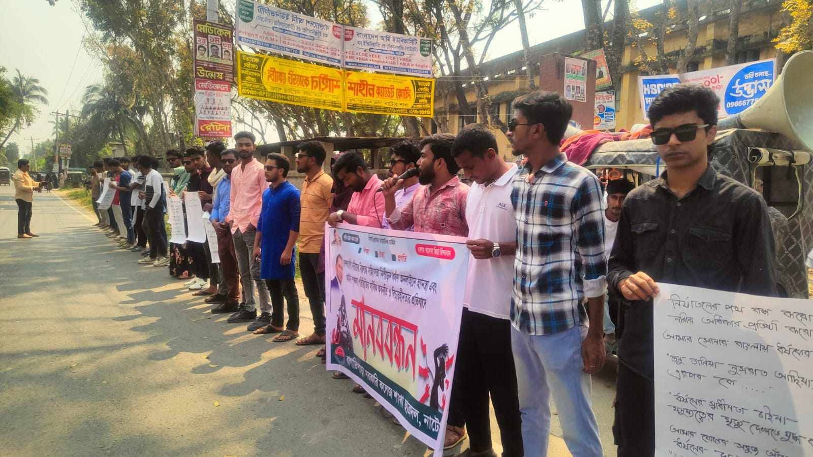 দেশব্যাপী নারীদের বিরুদ্ধে সহিংসতা নিপীড়ন ধর্ষণ অনলাইনে হ্যানস্থা এবং আইন শৃঙ্খলা পরিস্থিতির সার্বিক অবনতি ও বিচারহীনতার প্রতিবাদে নাটোরের বাগাতিপাড়ায় বিভিন্ন ইউনিয়নে পৃথক পৃথক ভাবে মানববন্ধন করেছে উপজেলার বিভিন্ন কলেজ শাখার ছাত্রদলের শিক্ষার্থীরা।