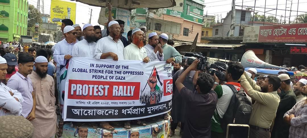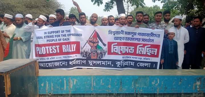 কুড়িগ্রামে বিশ্বব্যাপী নির্যাতিত ও নিপীড়িত গাজাবাসীর প্রতি সংহতি জানিয়ে এবং আহুত আন্তর্জাতিক হরতালের প্রতি সমর্থন জানিয়ে আজ সোমবার দুপুরে এক বিক্ষোভ মিছিল ও পথসভা অনুষ্ঠিত হয়।