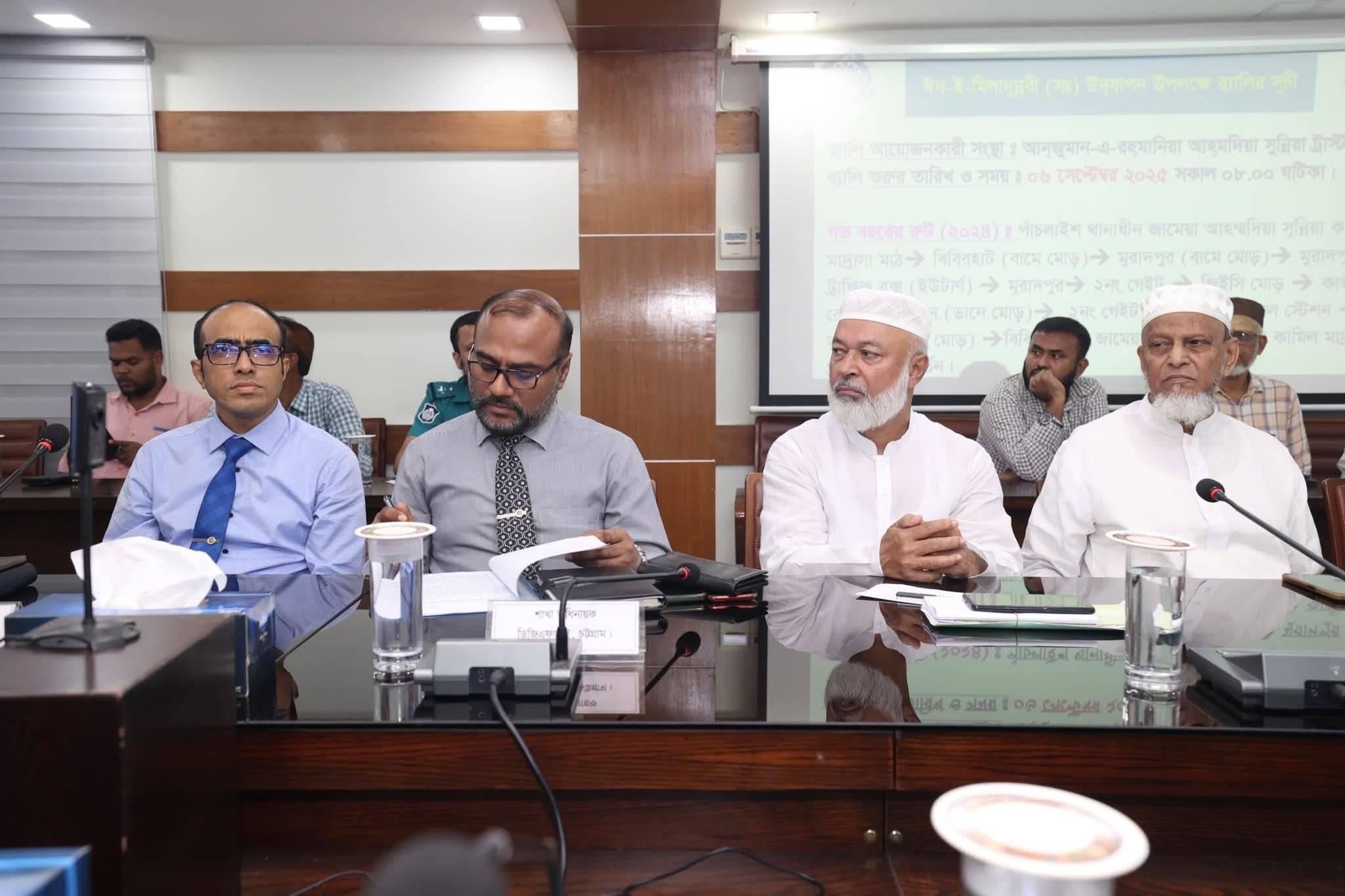 সভায় আরও উপস্থিত ছিলেন বাংলাদেশ সেনাবাহিনী, চট্টগ্রাম সিটি করপোরেশন, র্যাব, ফায়ার সার্ভিস, বিদ্যুৎ উন্নয়ন বোর্ড, ওয়াসা ও বিভিন্ন গোয়েন্দা সংস্থার কর্মকর্তাগণ এবং পবিত্র মিলাদুন্নবী (স) উদ্যাপন পরিষদের নেতৃবৃন্দ।