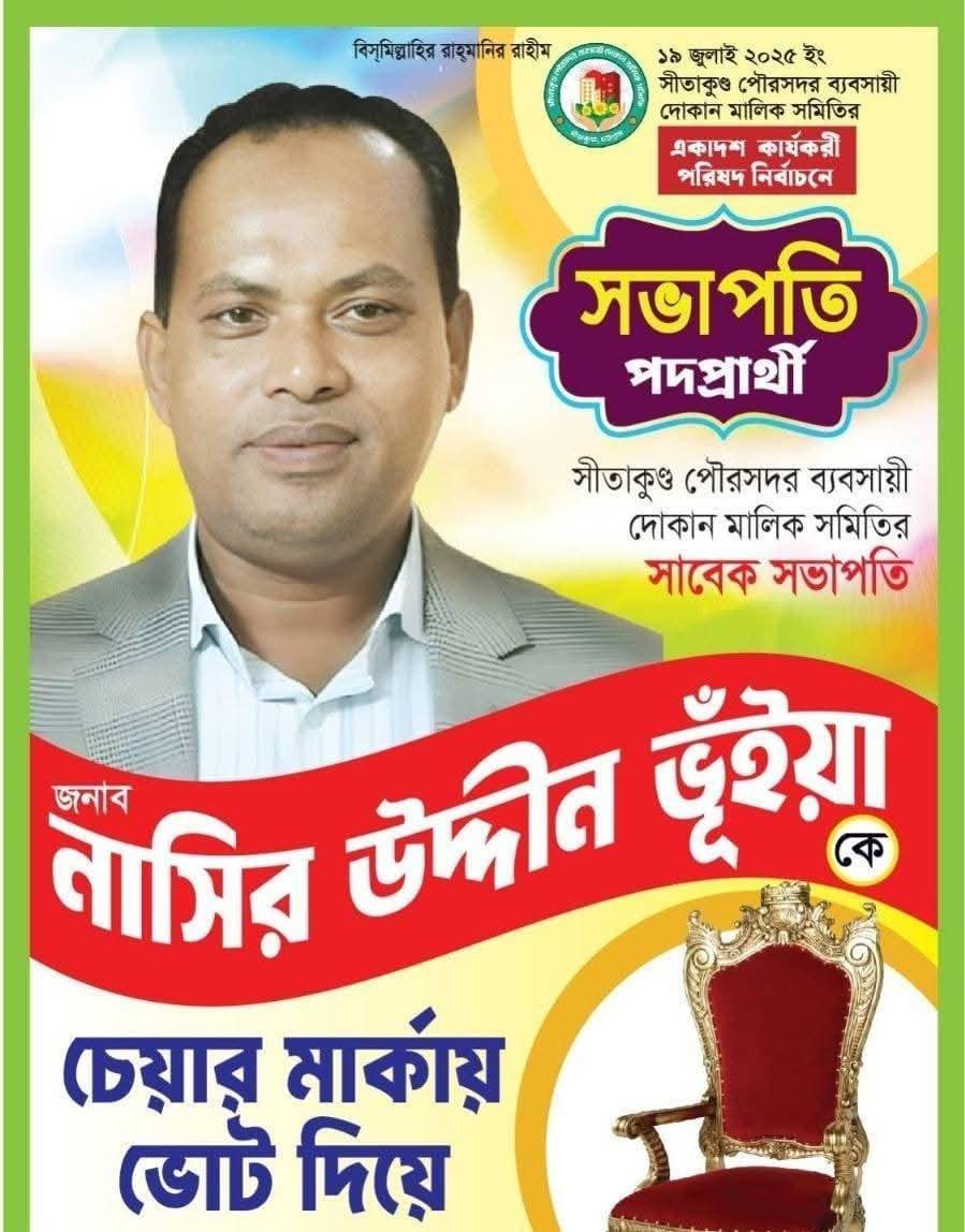 চট্টগ্রাম সীতাকু্ণ্ড সদর বাজার ব্যবসায়ী মালিক সমিতির নির্বাচন ১৯ জুলাই'২৫ সম্পন্ন হয়েছে।