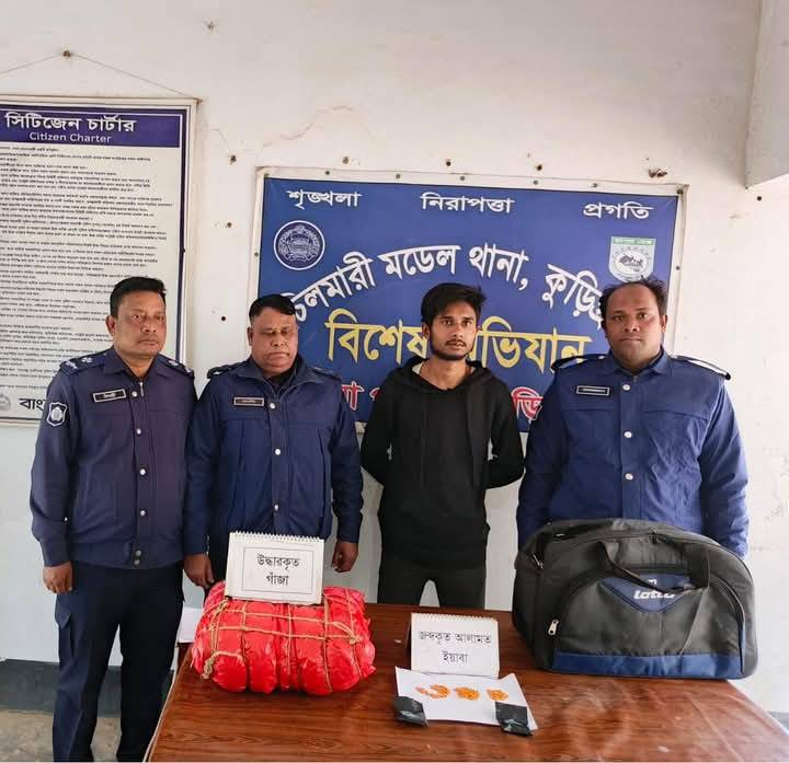 মঙ্গলবার বিকেলে ৪টা ৪৫ মিনিটে গোপন সংবাদের ভিত্তিত্বে চিলমারী মডেল থানার সাব ইন্সপেক্টর (নিরস্ত্র) মোঃ জাহাঙ্গীর আলমের নেতৃত্বে পুলিশের একটি চৌকষ টিম রমনা ঘাট এলাকায় অভিযান চালিয়ে শামীম হোসেন (২৩) নামে এক মাদক কারবারীর সাথে থাকা ব্যাগ তল্লাশী করে ৩০০ পিস ইয়াবা ও ৫ কেজি ১০০ গ্রাম গাঁজাসহ একটি মোবাইল ফোন জব্দ করে। মাদক কারবারীকে হাতে নাতে গ্রেফতার করে নিয়মিত মামলা রুজু করা হয়। গ্রেফতারকৃত শামীমের পিতার নাম আশরাফ আলী, মাতা- সাহিদা বেগম। তার বাড়ী ভুরুঙ্গামারী উপজেলার মইদাম গ্রামে। সাব ইন্সপেক্টর জাহাঙ্গীর আলম জানান, গ্রেফতারকৃত মাদক কারবারীর নিকট থেকে ১ লক্ষ ৩২ হাজার ৬‘শ টাকা মূল্যের মাদক পাওয়া গেছে। আসামীকে জেল হাজতে প্রেরণ করা হয়েছে।
