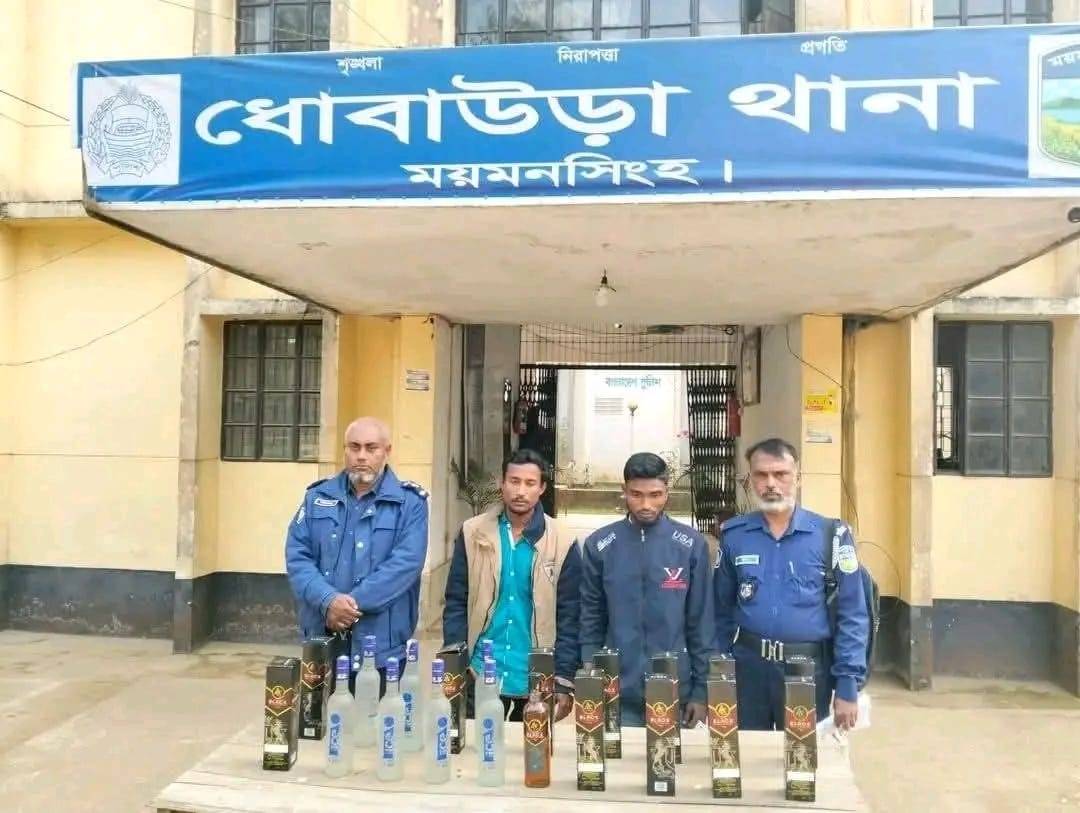 ময়মনসিংহের ধোবাউড়ায় ১৯ বোতল ভারতীয় নিসিদ্ধ মদ সহ দুইজনকে গ্রেপ্তার করেছে ধোবাউড়া থানা পুলিশ, গ্রেপ্তারকৃত হুমায়ূন কবির (২৬) শহিদুল ইসলাম (২৮) তাদের বাড়ি উপজেলার দুধনই গ্রামের আ: ছাত্তার ও পূর্ব সোহাগীপাড়া ফজলু মিয়ার ছেলে।