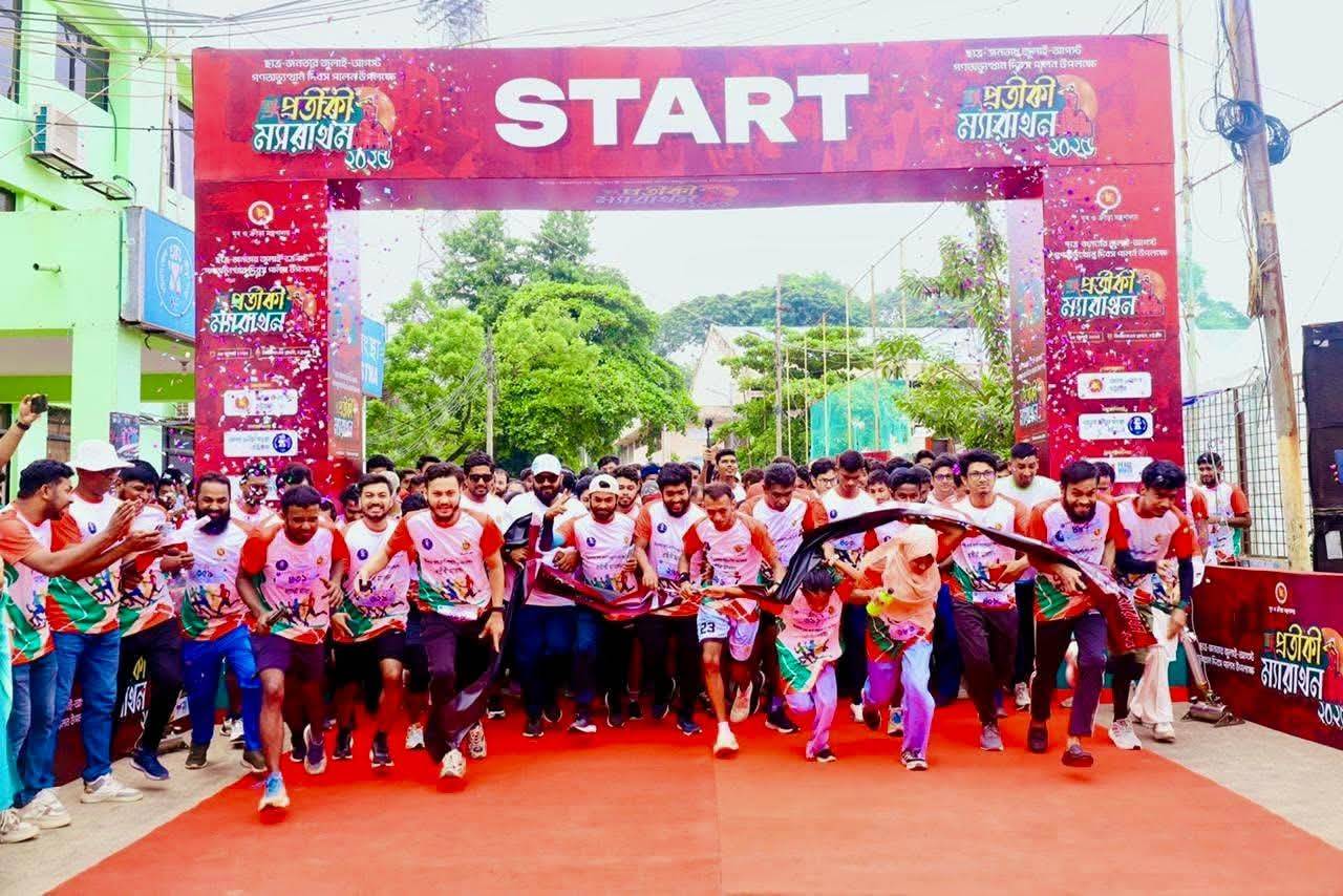 সকাল ৭টায় প্রধান অতিথি বেলুন উড়িয়ে প্রতীকী ম্যারাথনের উদ্বোধন করেন এবং গণতন্ত্র, অধিকার ও ন্যায়বিচারের পক্ষে তরুণ সমাজের গতিশীল ভূমিকার প্রতীকী বার্তা প্রদান করেন।