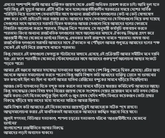 নোট: আমাদের লড়াই হবে 'আওয়ামী লীগের যেকোনো ভার্সন' বাংলাদেশে রাজনীতিতে প্রবেশের বিরুদ্ধে।