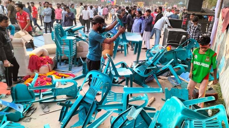 শিরোপা জয়ী ফরচুন বরিশাল দলের খেলোয়াড়দের সঙ্গে শুভেচ্ছা বিনিময় ও ট্রফি প্রদর্শন করার পর একটি কনসার্টের আয়োজন ছিল। কিন্তু লাখো মানুষের ভিড় সামলাতে প্রয়োজনীয় নিরাপত্তা ব্যবস্থা ছিল না। আয়োজকদের অব্যবস্থাপনা ও বিশৃঙ্খল পরিস্থিতির কারণে কিছুই করা সম্ভব হয়নি। এ সময়, দর্শকরা চেয়ার ছোঁড়েন এবং হুড়োহুড়ির মধ্যে অন্তত ৫০ জন আহত হন, যার মধ্যে কয়েকজন সংবাদকর্মীও রয়েছেন। বিক্ষুব্ধ জনতা জুতা ও চেয়ার নিক্ষেপ করে এবং তাদের ক্ষোভের বহিঃপ্রকাশ ঘটায়। ফলে অনুষ্ঠানটি সম্পূর্ণভাবে পণ্ড হয়ে যায়।