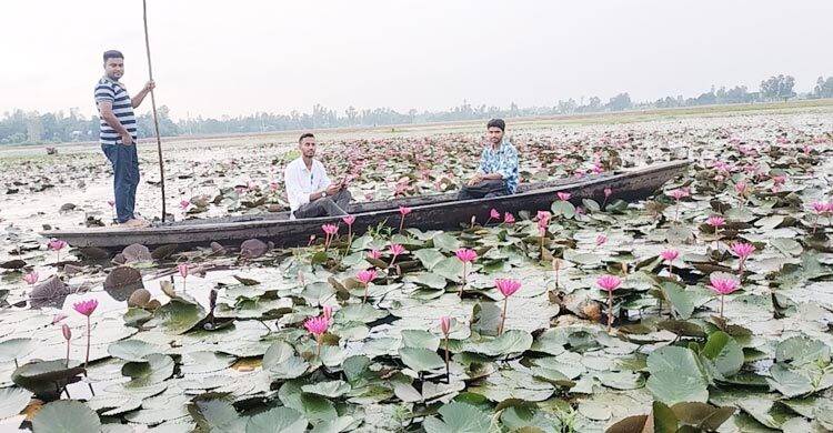 যেখানে হাজারো শাপলার অপরূপ সৌন্দর্য সবাইকে মুগ্ধ করছে। দিগন্ত বিস্তৃত এ পদ্ম বিলের সৌন্দর্য দেখলে মনে হবে যেন, প্রকৃতির বুকে আঁকা এক নকশি কাঁথা। বর্তমানে রৌমারীর পাটা ধোঁয়া শাপলা বিলে ভিড় করছেন পর্যটকরা।