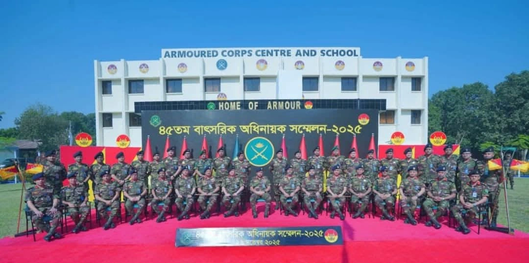 বগুড়া সেনানিবাসস্থ আর্মার্ড কোর সেন্টার অ্যান্ড স্কুল (এসিসিএন্ডএস)-এ আজ অনুষ্ঠিত হয়েছে সাঁজোয়া কোরের ৪৫তম বাৎসরিক অধিনায়ক সম্মেলন-২০২৫। অনুষ্ঠানে প্রধান অতিথি হিসেবে উপস্থিত ছিলেন সেনাবাহিনী প্রধান জেনারেল ওয়াকার-উজ-জামান, এসবিপি, ওএসপি, এসজিপি, পিএসসি। এসিসিএন্ডএস-এ পৌঁছালে তাঁকে অভ্যর্থনা জানান জিওসি আর্মি ট্রেনিং অ্যান্ড ডকট্রিন কমান্ড; সাঁজোয়া কোরের কর্নেল কমান্ড্যান্ট; জিওসি ১১ পদাতিক ডিভিশন ও এরিয়া কমান্ডার বগুড়া এরিয়া এবং কমান্ড্যান্ট এসিসিএন্ডএস।