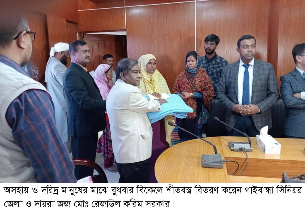 অসহায় ও দরিদ্র মানুষের মধ্যে বুধবার বিকেলে বিচার বিভাগ,গাইবান্ধার আয়োজনে জেলা ও দায়রা জজ আদালত সম্মেলন কক্ষে শীতবস্ত্র বিতরণ করা হয়।