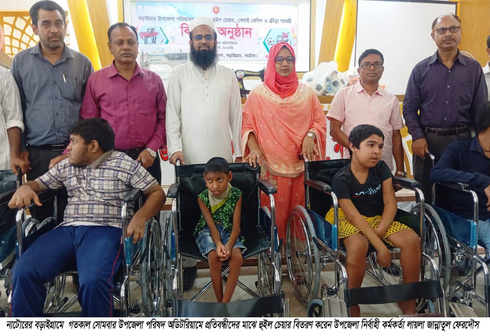 নাটোরের বড়াইগ্রামে সুবিধাভোগীদের মাঝে হুইল চেয়ার, সেলাই মেশিন, ব্রেঞ্চ ও ক্রীড়া সামগ্রী বিতরণ করা হয়েছে। উপজেলা পরিষদের অর্থায়নে সোমবার (২৮ জুলাই) উপজেলা অডিটোরিয়ামে এক অনুষ্ঠানের মাধ্যমে এসব সামগ্রী বিতরণ করা হয়।