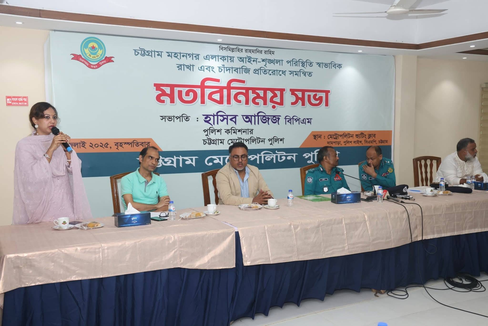 নগরীর দামপাড়া পুলিশ লাইন্স শুটিং ক্লাবে চট্টগ্রাম মহানগর এলাকায় আইন-শৃঙ্খলা পরিস্থিতি স্বাভাবিক রাখা ও চাঁদাবাজি প্রতিরোধের লক্ষ্যে বিভিন্ন সংগঠনের নেতৃবৃন্দের সাথে মতবিনিময় সভা আজ বৃহস্পতিবার বিকেল সাড়ে ৩টায় অনুষ্ঠিত হয়।