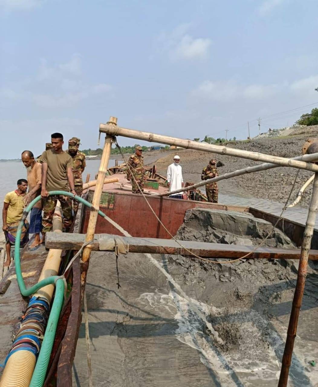 অতঃপর, গতকাল ০১ এপ্রিল ২০২৫ তারিখ সকালে জেলা প্রশাসক সাতক্ষীরা জেলা, ৫৫ পদাতিক ডিভিশনের অন্তর্ভুক্ত সাতক্ষীরা জেলার আশাশুনি আর্মি ক্যাম্পের ক্যাম্প কমান্ডার, উপজেলা নির্বাহী কর্মকর্তা ও পানি উন্নয়ন বোর্ডের প্রতিনিধি ভেঙে যাওয়া বাঁধ ও প্লাবিত এলাকা পরিদর্শন করেন এবং সংকট নিরসনের জন্য দ্রুত ব্যবস্থা গ্রহণ করেন। বর্তমানে আশাশুনি ক্যাম্প থেকে দুটি প্যাট্রল টিম এলাকাটিতে অবস্থান করে স্থানীয় লোকজন এবং প্রশাসনকে বাঁধ মেরামতের কাজে সর্বাত্মক সহায়তা প্রদান করছে। এছাড়াও, ৫৫ পদাতিক ডিভিশন হতে ইঞ্জিনিয়ার্স ব্যাটালিয়নের একটি দল বাঁধ মেরামতের জন্য উক্ত স্থানে প্রেরণ করা হয়েছে।