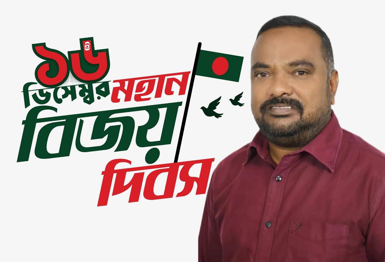 ১৬ই ডিসেম্বর মহান বিজয় দিবস উপলক্ষ্যে নারায়ণগঞ্জবাসিকে প্রাণঢালা শুভেচ্ছা ও অভিনন্দন জানিয়েছেন, মোঃ আলমগীর হোসেন সাধারণ সম্পাদক, ফতুল্লা ইউনিয়ন বিএনপি সাংগঠনিক সম্পাদক, ফতুল্লা থানা বিএনপি।