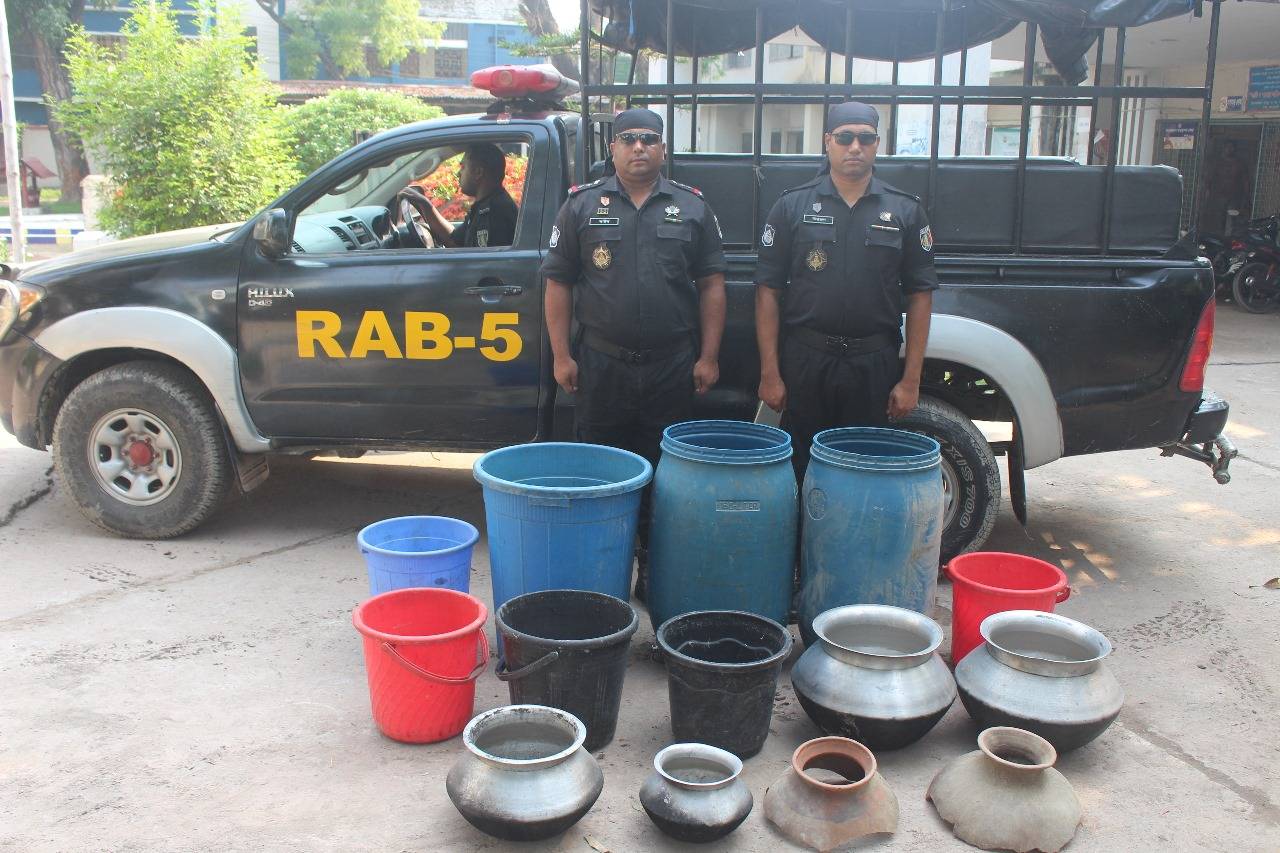 তাদের কাছ থেকে ১,০৩৫ লিটার চোলাই মদ জব্দ করা হয়।
