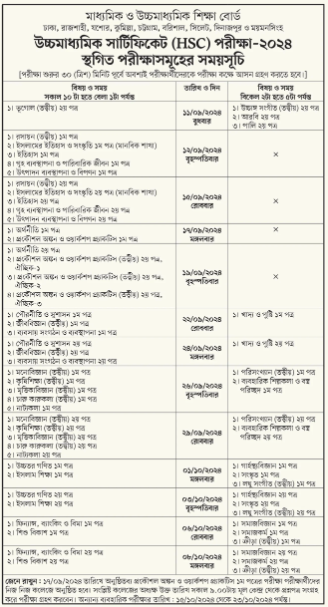 নতুন সময়সূচি অনুযায়ী, ঢাকা, রাজশাহী, যশোর, কুমিল্লা, চট্টগ্রাম, বরিশাল, সিলেট, দিনাজপুর ও ময়মনসিংহসহ সকল শিক্ষা বোর্ডে এই পরীক্ষাগুলো একই সময়ে অনুষ্ঠিত হবে।