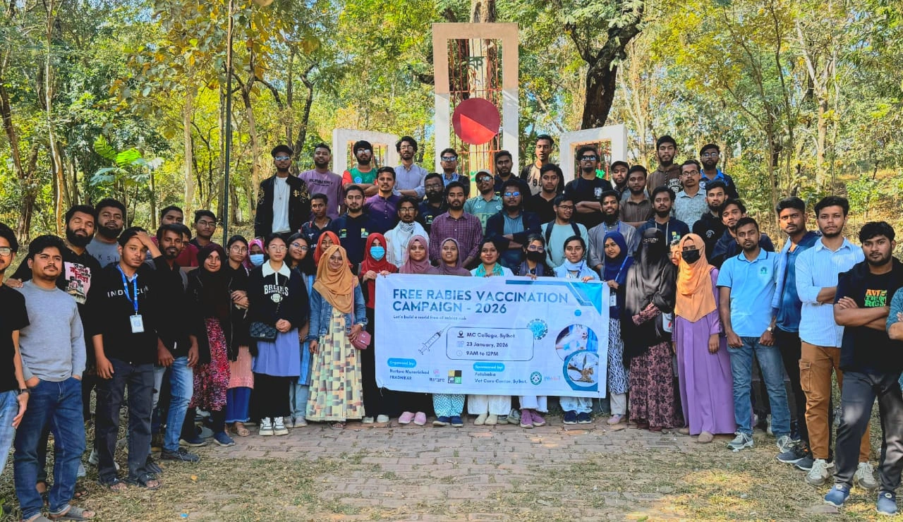 প্রাণীদের প্রতি মমত্ববোধ ও জনসচেতনতা বৃদ্ধির লক্ষ্যে সিলেটের ঐতিহ্যবাহী মুরারিচাঁদ (এমসি) কলেজে বিনামূল্যে জলাতঙ্ক প্রতিরোধ টিকা প্রদান কর্মসূচি অনুষ্ঠিত হয়েছে। শুক্রবার (২৩ জানুয়ারি) সকালে কলেজের কেন্দ্রীয় গ্রন্থাগারের সামনে এ কর্মসূচির আয়োজন করা হয়।