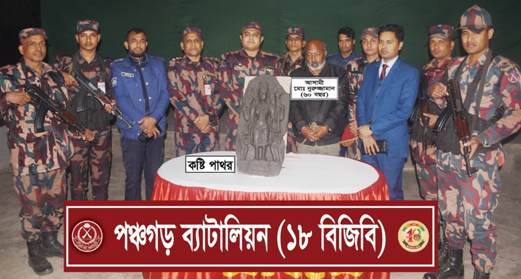 পঞ্চগড় সদর উপজেলায় বর্ডার গার্ড বাংলাদেশ (বিজিবি) বিশেষ অভিযান চালিয়ে ২৫ লাখ টাকা মূল্যের একটি কষ্টিপাথর উদ্ধার করেছে। অভিযানে ম্যাজিস্ট্রেট ও থানা পুলিশের সহায়তায় নুরুজ্জামান এসেন (৬০) নামে এক ব্যক্তিকে আটক করা হয়।