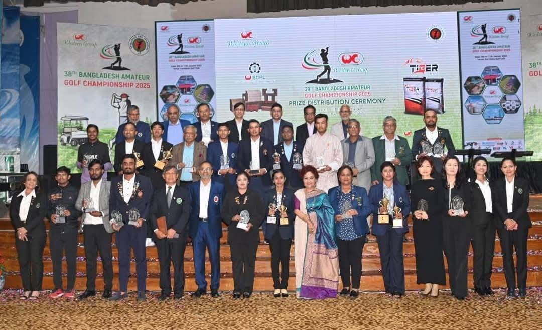 ঢাকা, ১২ জানুয়ারি ২০২৫ (রবিবার): গত ১১ জানুয়ারি ২০২৫ তারিখে '৩৮তম বাংলাদেশ এ্যামেচার গলফ চ্যাম্পিয়নশীপ (বিএজিসি)-২০২৫' এর সমাপনী ও পুরস্কার বিতরণী অনুষ্ঠান কুর্মিটোলা গলফ ক্লাব, ঢাকা সেনানিবাসে অনুষ্ঠিত হয়।