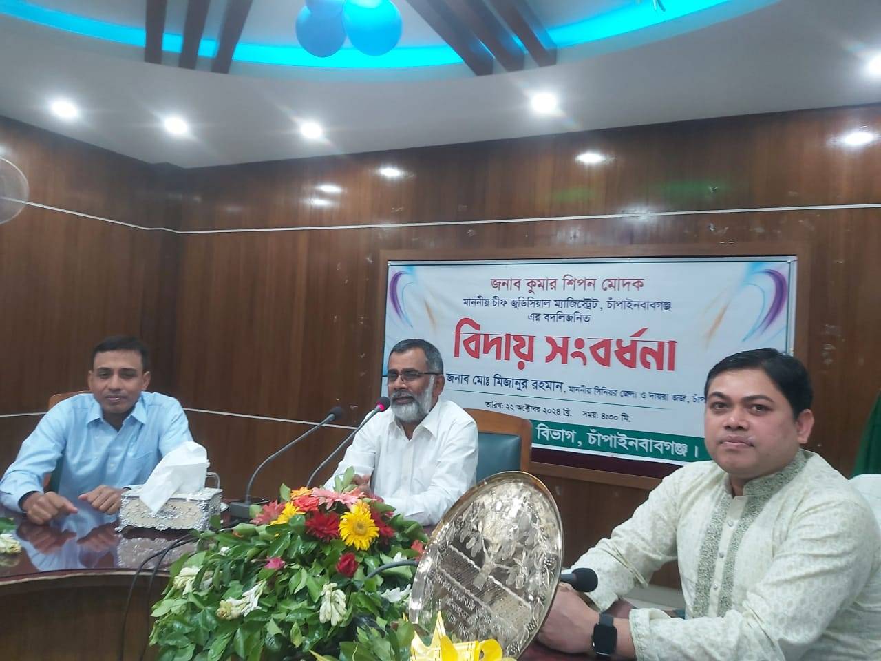 বক্তারা বিদায়ী অতিথির উদ্দেশ্যে শুভকামনা ব্যক্ত করেন এবং তাঁর ভবিষ্যৎ জীবনের সফলতা কামনা করেন। এসময় আদালতের বিচারক মন্ডলী, কর্মকর্তা-কর্মচারীবৃন্দ উপস্থিত ছিলেন।