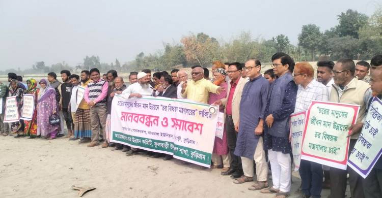 চরাঞ্চলের মানুষের অধিকার ও উন্নয়ন নিয়ে সচেতনতা বৃদ্ধির লক্ষ্যে কুড়িগ্রাম জেলার ফুলবাড়ী উপজেলার নাওডাঙ্গা ইউনিয়নের চর গোরকমন্ডপে এক মানববন্ধন ও সমাবেশ অনুষ্ঠিত হয়েছে।