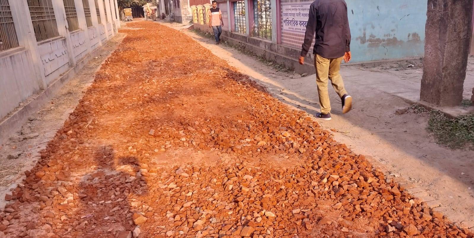 সরেজমিনে গিয়ে জানা যায়, রবিবার রাস্তায় ইটের সুরকি ফালানো হচ্ছে। উপজেলা এলজিইডি অফিসের কার্য্য সহকারী মজিবুর রহমান কাজটি তদারকি করছেন। আর তার চোখের সামনেই মিঠা ইট ও নি¤œমানের সামগ্রী রাস্তায় ফালানো হচ্ছে।