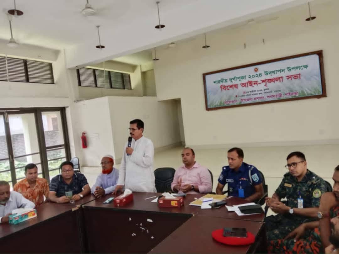 গাইবান্ধার পলাশবাড়ীতে শারদীয় দুর্গাপূজা উপলক্ষে বিশেষ আইনশৃঙ্খলা বিষয়ক সভা অনুষ্ঠিত হয়েছে।