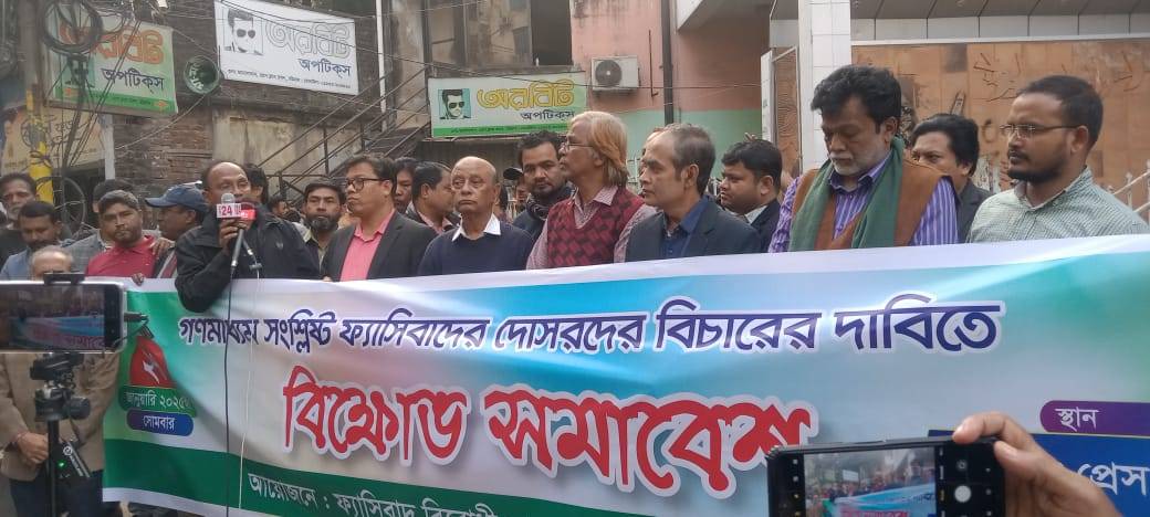 আজ ২৭ জানুয়ারী (সোমবার) ৩ টায় চট্টগ্রাম প্রেস ক্লাব চত্বরে গণমাধ্যম সংশ্লিষ্ট ফ্যাসিবাদের দোসরদের বিচারের দাবিতে বিক্ষোভ সমাবেশে বক্তারা এসব কথা বলেন।
