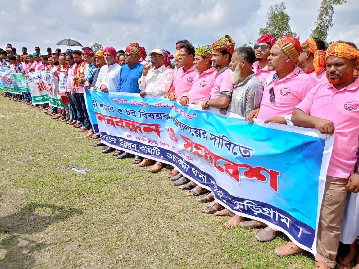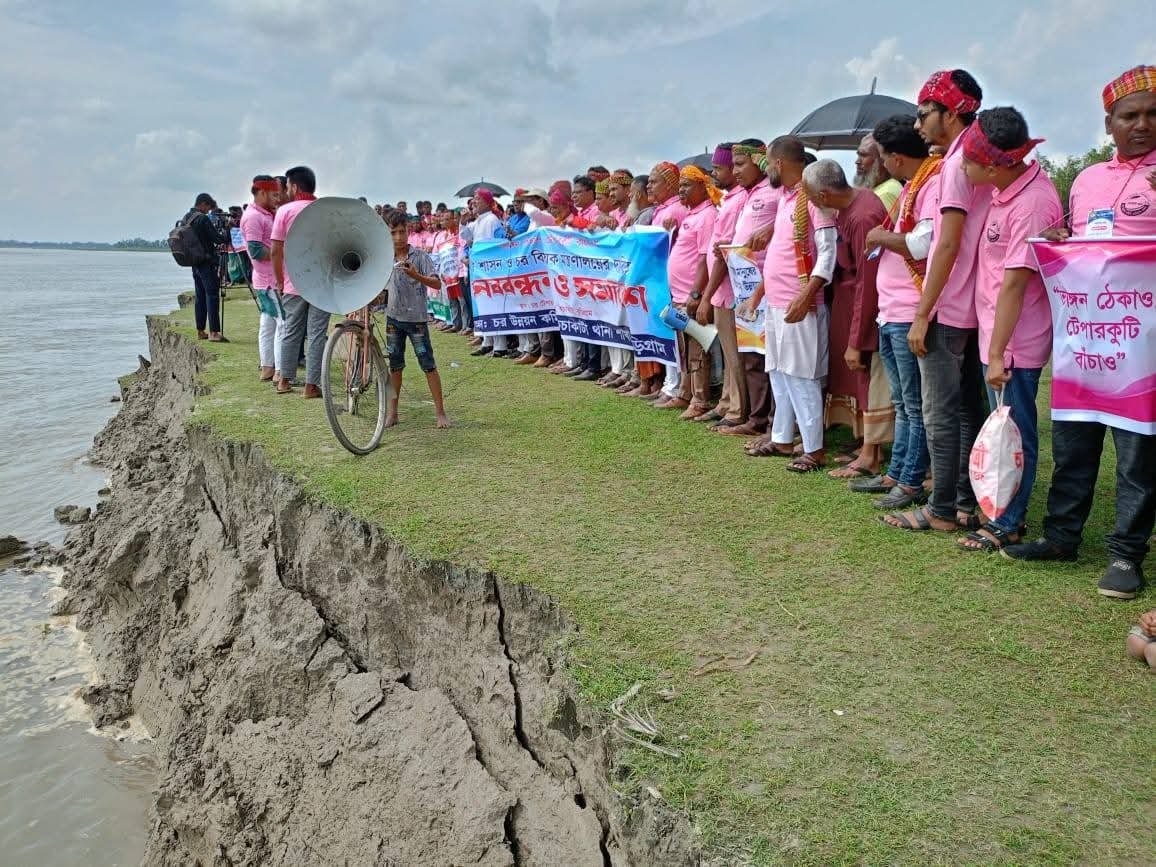 চর বিষয়ক আলাদা স্বতন্ত্র মন্ত্রণালয়ের দাবিতে কুড়িগ্রাম জেলার নাগেশ্বরী উপজেলার কচাকাটা থানার কেদার ইউনিয়নের টেপারকুটিতে মানববন্ধন ও সমাবেশ করেছেন স্থানীয়রা।
