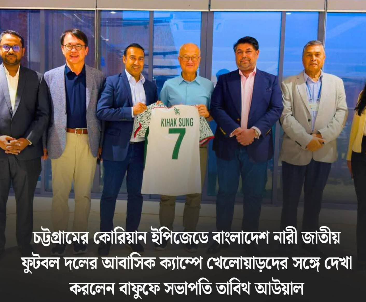 এ সময় জাতীয় দলের হোম কিট জার্সি কিহাক সাং-এর হাতে তুলে দেন বাফুফে সভাপতি। নারী ফুটবলে প্রতিষ্ঠানের অব্যাহত সহায়তার স্বীকৃতিস্বরূপ সহ-সভাপতি ফাহাদ করিম প্রতিষ্ঠানটিকে একটি ক্রেস্ট প্রদান করেন।