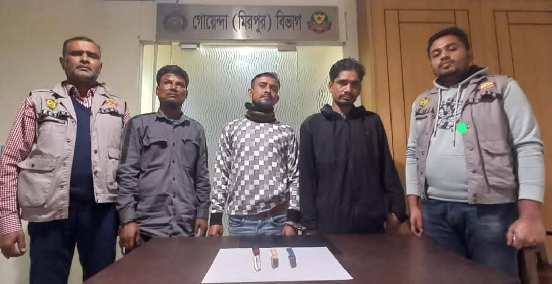 বুধবার (৮ জানুয়ারি ২০২৫ খ্রি.) রাত ১২:০৫ ঘটিকায় মিরপুরের লাভ রোড থেকে তাদেরকে গ্রেফতার করে ডিবি-মিরপুর বিভাগের পল্লবী জোনাল টিম।