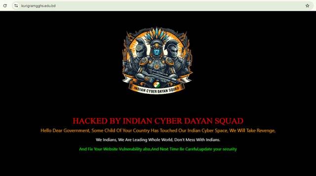 সাইটটির নিয়ন্ত্রণ নিয়ে ভারতীয় হ্যাকার গ্রুপ তাতে নিজেদের লোগোসহ লিখে রাখে "HACKED BY INDIAN CYBER DAYAN SQUAD"। শুধু তাই নয়, হ্যাকার গ্রুপটি ‘প্রতিশোধের’ ঘোষণা দিয়ে বাংলাদেশ সরকারকে সতর্ক করে লিখে রাখে, "হ্যালো প্রিয় সরকার! তোমাদের কিছু লোকজন আমাদের ভারতীয় সাইবার স্পেস স্পর্শ করেছে, আমরা প্রতিশোধ নেবো। আমরা ভারতীয়। আমরা গোটা বিশ্বে নেতৃত্ব দিচ্ছি। ভারতীয়দের ঘাটতে এসো না।"