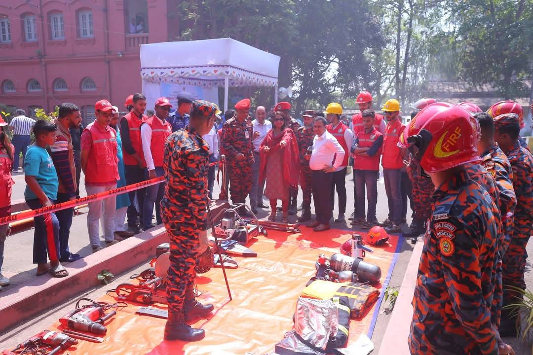 আলোচনা সভা শেষে অগ্নিকান্ড বিষয়ক মহড়া পরিচালনা করেন ফায়ার সার্ভিস ও সিভিল ডিফেন্স, চট্টগ্রাম।